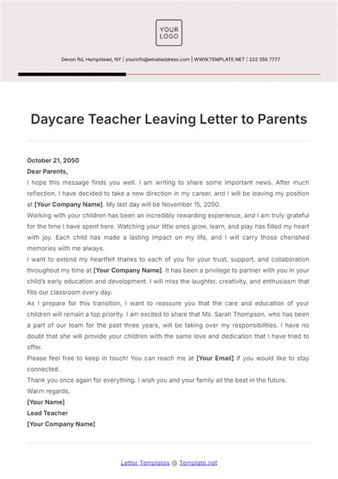 Download SAMPLE LEAVING LETTER TO DAYCARE PARENTS Doc Library Genesis